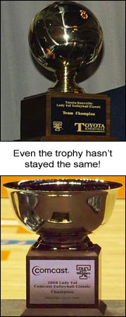 Last year it was dubbed the “seventh annual Comcast Lady Vol Classic” — meaning it all started in 2003, right? But in 1999, we held the “third annual Toyota Lady Vol Classic”. Semantics over sponsorships, perhaps? Maybe it was the seventh annual Comcast Lady Vol Classic and the third annual Toyota Lady Vol Classic. Nope. Besides the fact that that would seem to be a good way to shortchange the legacy of your tournament, there’s the tiny detail that in 2004 it was the Domino’s Pizza Lady Vol Classic. If we’re counting by sponsor then last year would have been just the fifth time Comcast got the honors not the seventh.